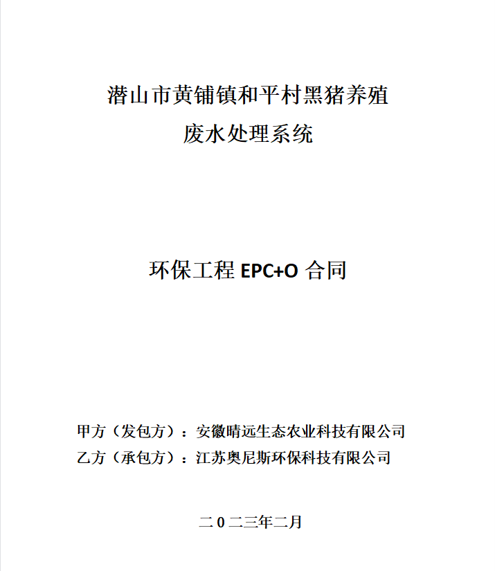 該項目位于安徽省潛山市,是黑豬養殖廢水處理系統的建設、運營項目,總處理水量60t/d,出水達到一級A標準。